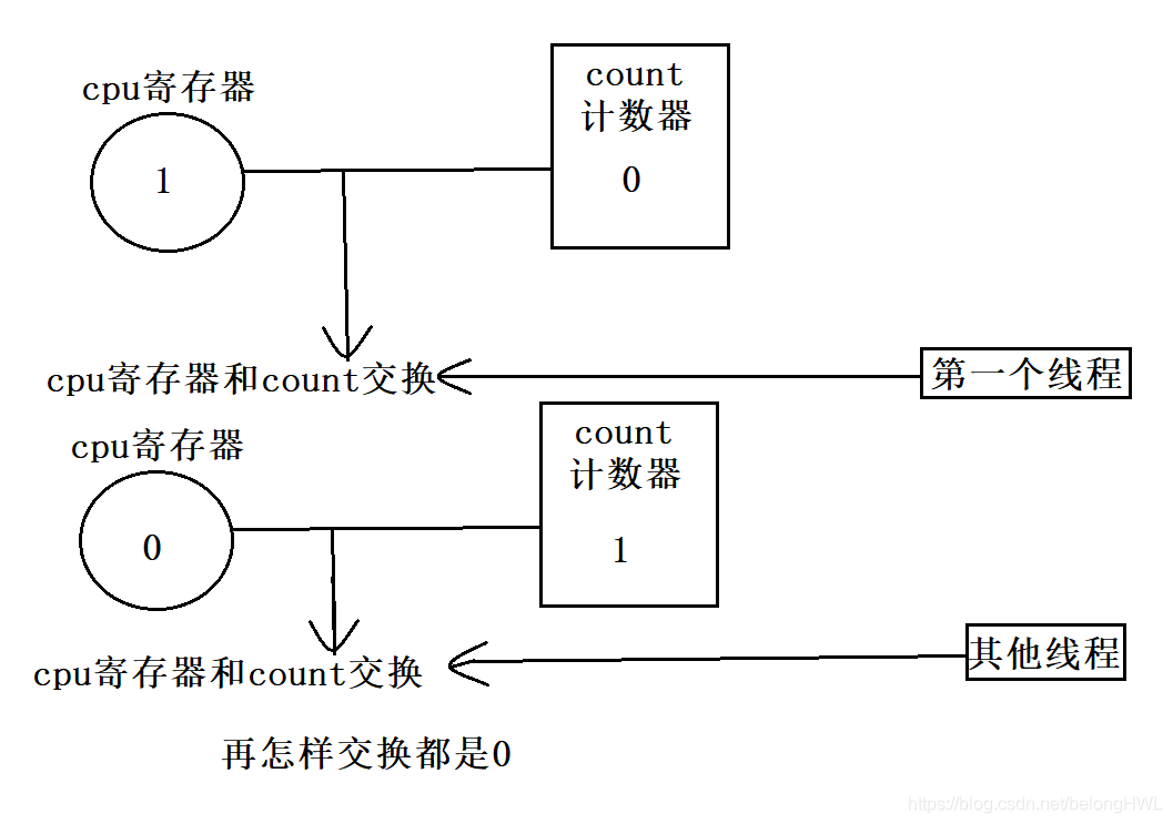 计数器原子性操作原理:我们可以发现,每一个线程都可以对计数器进行修改,那么只有计数器修改操作是原子性的,才可以保证线程安全;那么计数器是怎样实现原子性呢?请看下图