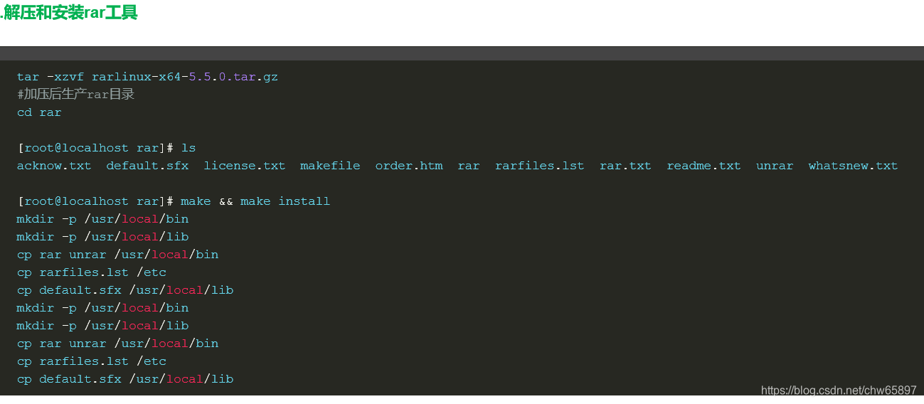 rar工具软件下载地址(RAR 5.50 for Linux x64):https://www.rarlab.com/rar/rarlinux-x64-5.5.0.tar.gz