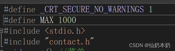 相应的,要把MAX的宏定义放到contact.h的文件中 ,上述代码就创建了一个通讯录,存放了联系人信息和当前通讯录的人数