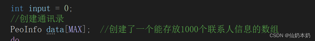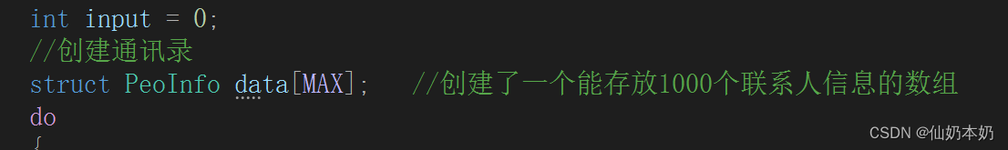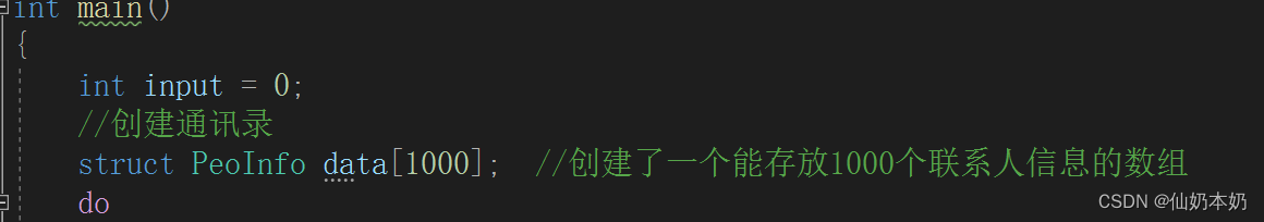 接着拿起这个结构体在主函数中创建出一个通讯录
