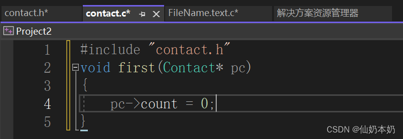 一开始我们要写一个初始化通讯录的函数,这个函数要在contact.h文件中声明,在contact.c文件中实现