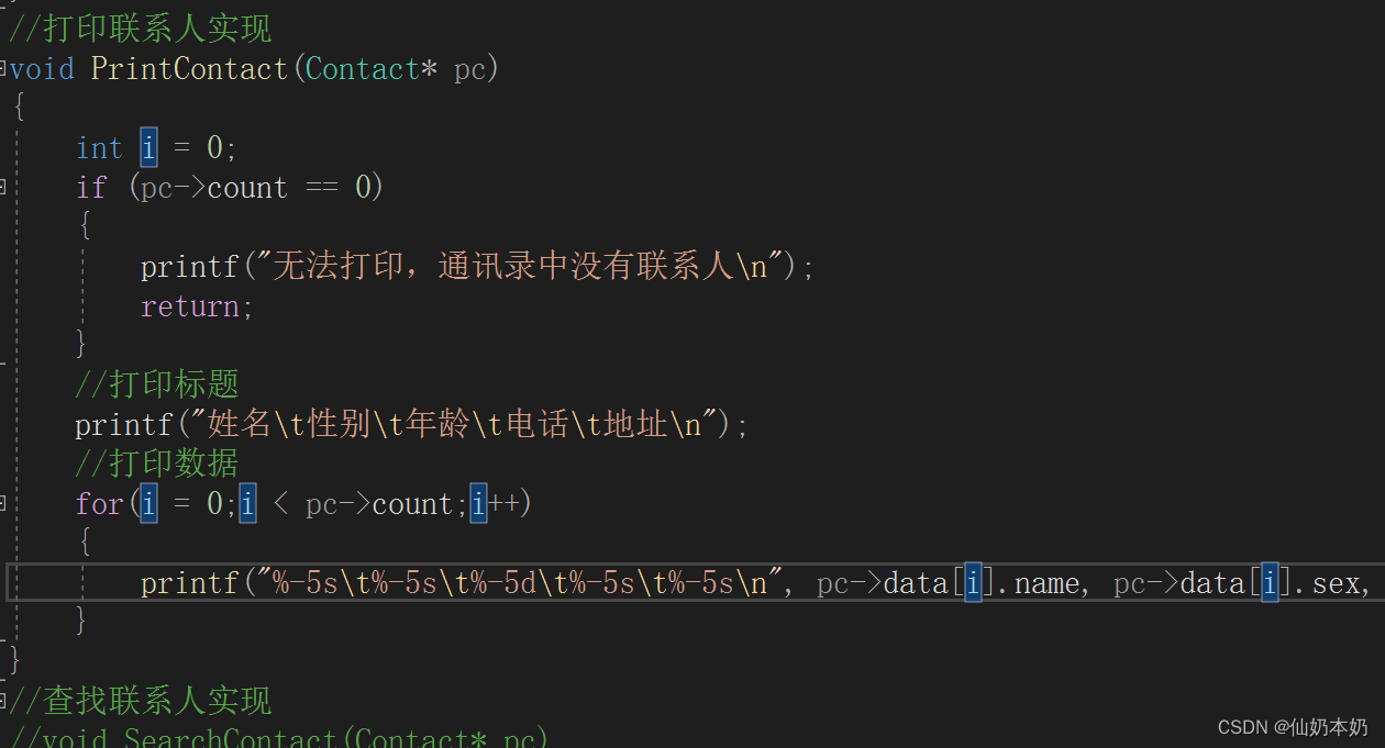 接下来,我们就要分别实现退出,新建、删除、查找联系人以及修改联系人信息,打印成员列表的功能,意味着我们要把这些功能放到不同的函数中来实现。