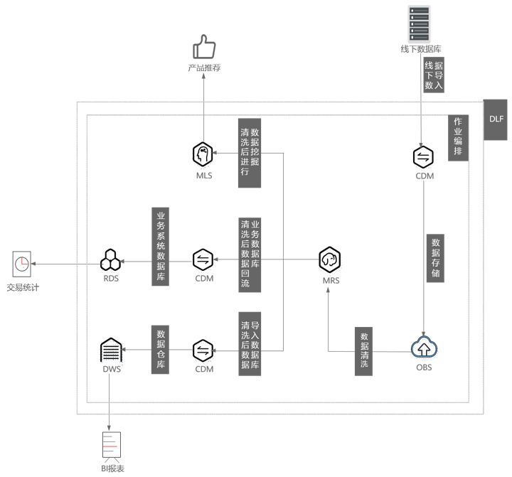 通过数据集成模块将线下数据迁移到华为云上,将数据集成到华为云大数据服务中,并在数据开发模块中进行数据开发。