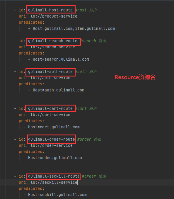- route维度 : 即在Spring配置文件在配置的路由条目 , 资源名为对应的routeid