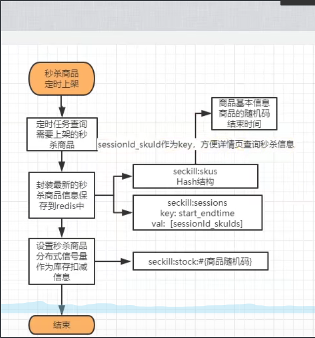 / * 缓存活动信息 key: seckill:session:_ value:List<String> {1,2,3,4,5} * @param sessions */ private void saveSessionInfos(List<SeckillSessionWithSkus> sessions){ sessions.stream().forEach(session -> { Long startTime = session.getStartTime().getTime(); Long endTime = session.getEndTime().getTime(); String key = SESSIONS_CACHE_PREFIX + startTime + "_" + endTime; Boolean hasKey = stringRedisTemplate.hasKey(key); if(!hasKey){ List<String> collect = session.getRelationSkus().stream().map(item -> item.getSkuId().toString()).collect(Collectors.toList()); //缓存活动信息 stringRedisTemplate.opsForList().leftPushAll(key,collect); } }); }