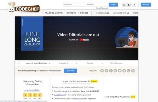 CodeChef是一家印度的编程竞赛网站,它提供了数百个挑战供你选择。在这里,你可以: