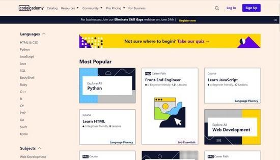 包含在线编程练习和课程视频,从前端到后端都有覆盖,一个比较大的优势是种类比较全,视频和练习题结合的形式也能更好的进行学习。