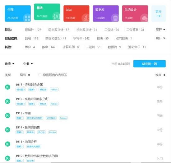 LintCode 收集了网上一些最常见、最高频的编程题目,支持中英双语:相比其他的一些网站,LintCode 的编程挑战覆盖的领域更多,包括 算法、数据结构,人工智能,系统设计 等众多领域。