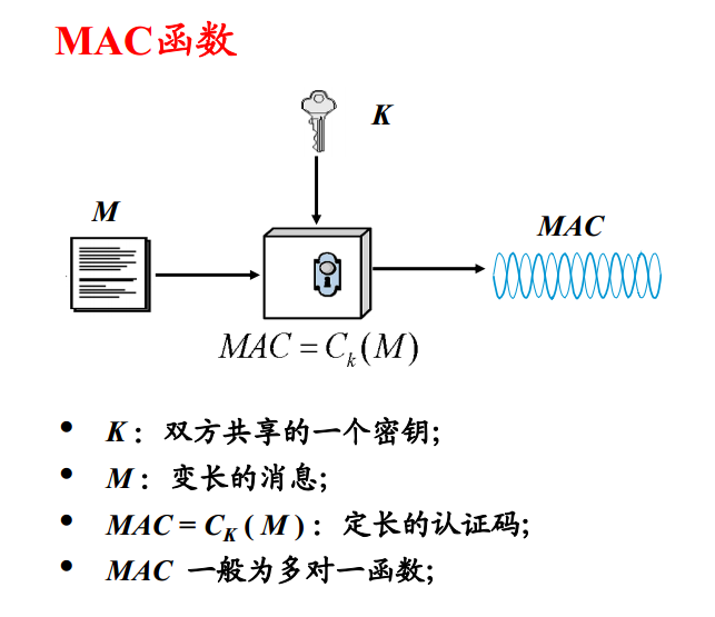在开放的计算和通信世界(例如Internet)中,我们会使用不可靠的媒介传输和存储信息。而对信息完整性(integrity)的校验在某些情景下就十分重要。基于密钥作完整性校验的方法常称为MAC(Message Authentication Code)。通常MAC在共享密钥的双方之间,校验相互传递的信息。
