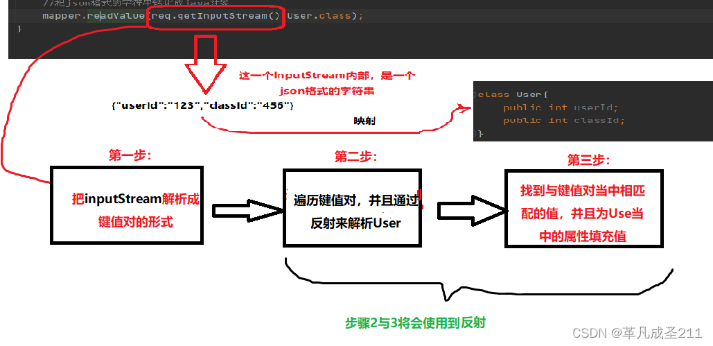 第二步:调用(mapper)的readValue方法;这个方法内部有两个参数:
