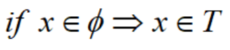 这里要提一下空集∅,空集表示一个元素也没有。对于一个非空集合T,那么任意一个不属于T的元素,也就不属于∅。即命题