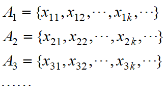 设每个可列集排列规则如下: