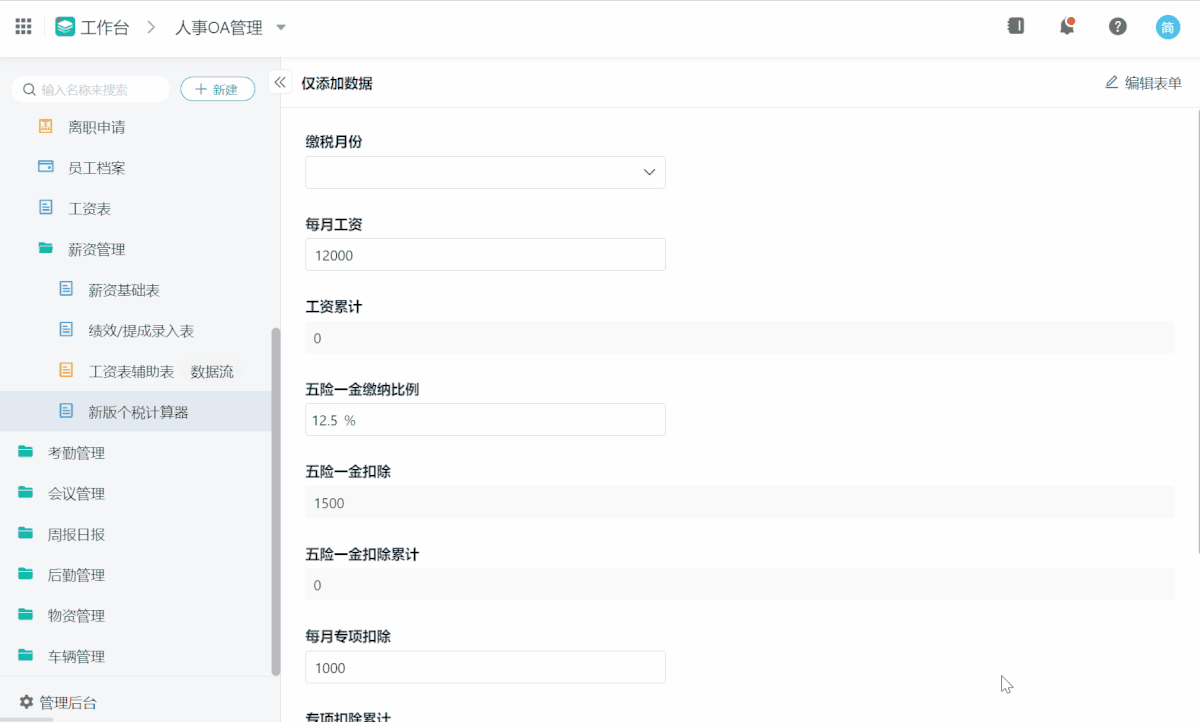 录入人员资料、工资构成、工资底薪、每月附加专项扣除、社保基数等基础信息