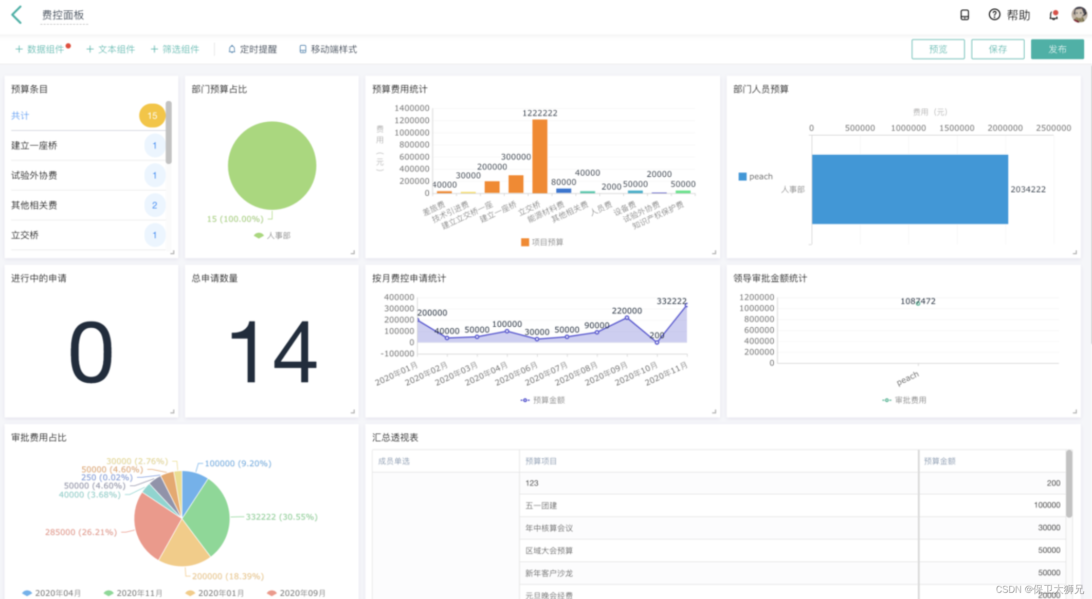 费控相关数据同样可以通过仪表盘进行统计分析与展示