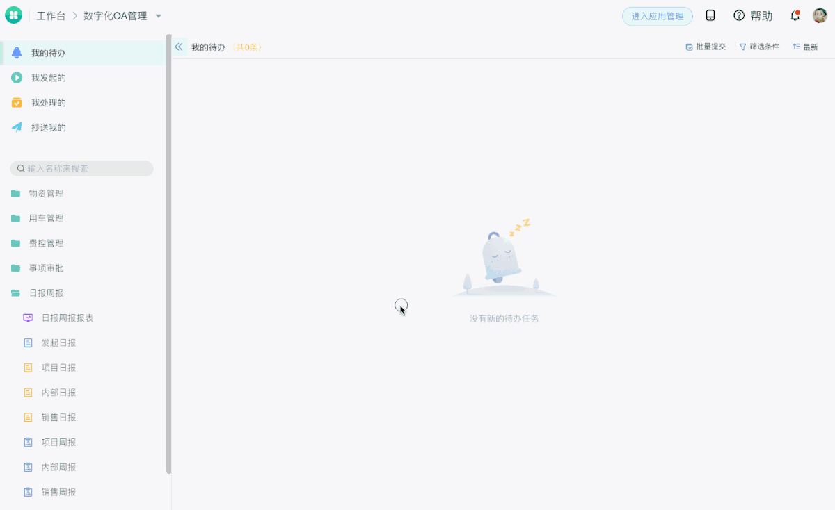 本方案以用车管理为主要场景进行数字化OA系统的讲解,企业若无此业务可以替换企业自身主要业务进行应用搭建。