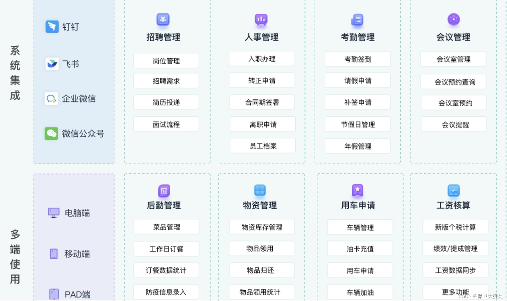一个智能化的OA系统应当包含办公、人事、考勤、项目等等系统,将他们紧密的拼接起来,完美地运行下去。