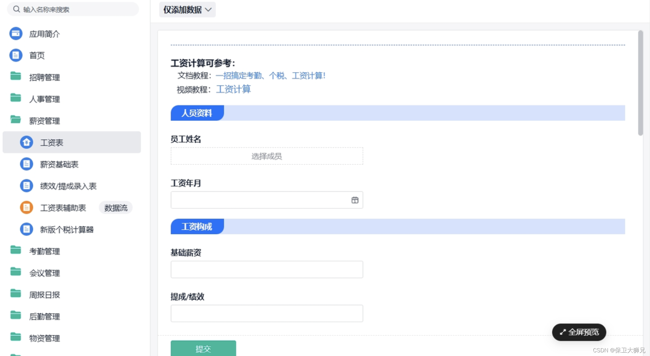 薪资管理包括工资表、薪资基础表、绩效/提成录入表、工资表辅助表、新版个税计算器等等