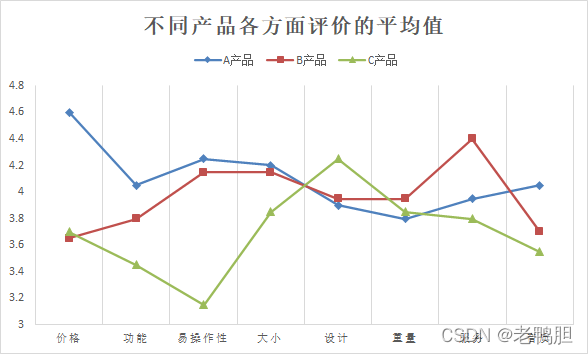 上图反映了A产品和B产品在价格因素上的分布,它们的平均值不同,数据各自分布在平均值周围,并且越接近平均值的位置数据越多,在分布图上的峰度就高,而距平均值越远的位置数据就越少,在分布图上的峰度就低。