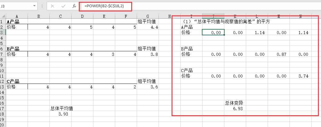 通过观察值与平均值之间距离的平方来判断观察值距离总体平均值有多远(有无变异),对每一组观察数据都进行相同的计算,将所得值全部相加得出的就是总体变异。