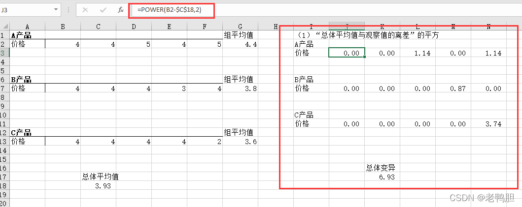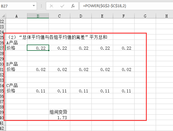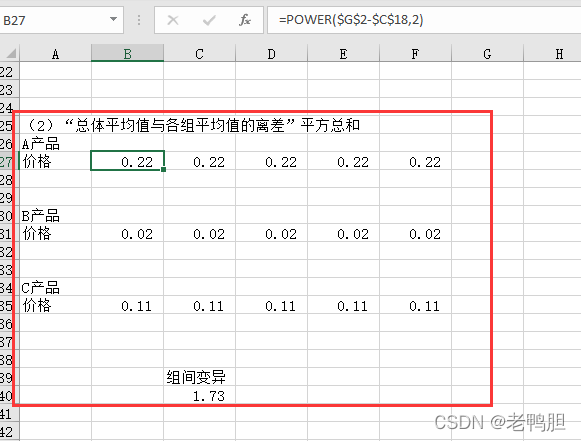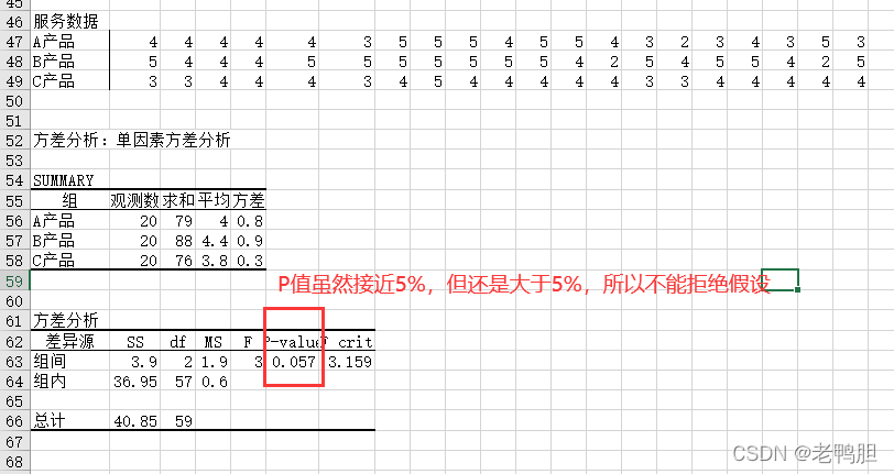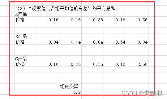 方差分析的原理只考虑组间变异和组内变异的比率,即求出B和C的值就可以了,通过A的值可以发现总体变异是组间变异和组内变异的和