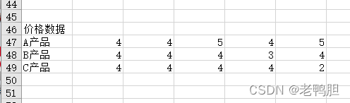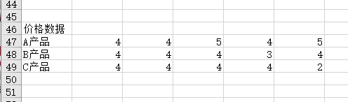 为了简化例子只考虑与A产品、B产品的价格相关的数据的情况。