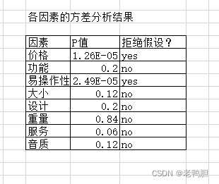 有些人会觉得三个产品间的重量没有差异,有些人会觉得易操作性、功能、价格等都有差异或无差异,下面就用方差分析来检验这些要素间是否存在统计学意义上的差异。