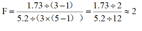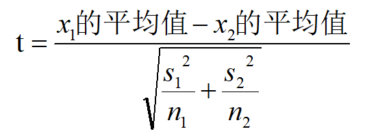 式中,x1,x2表示两组数据,s1,s2分别表示x1,x2的方差,n1,n2分别表示x1,x2的样本数量