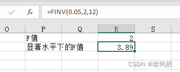 那么当显著水平为5%时F分布中的F值为多少呢?(应用excel中的finv()函数)