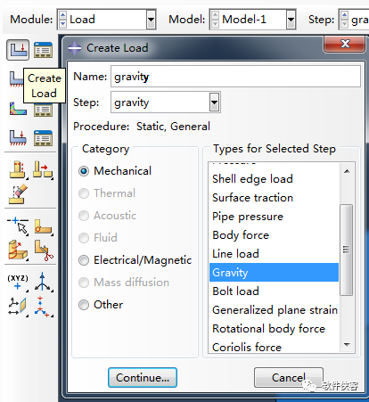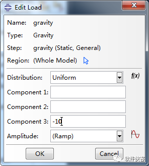 注:abaqus单元类型我一般情况下喜欢将Z轴正向朝向实际情况的天空方向,因此重力的数值输入在分量3中,负号代表朝下。