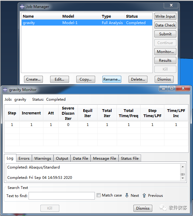 回到job模块,点击Monitor,查看Step和Increment对应的信息:分析用了几个分析步,几个增量步。