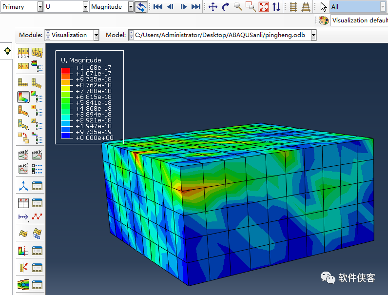 平衡后,模型位移如下,最大位移1.168e-17,平衡效果很好。