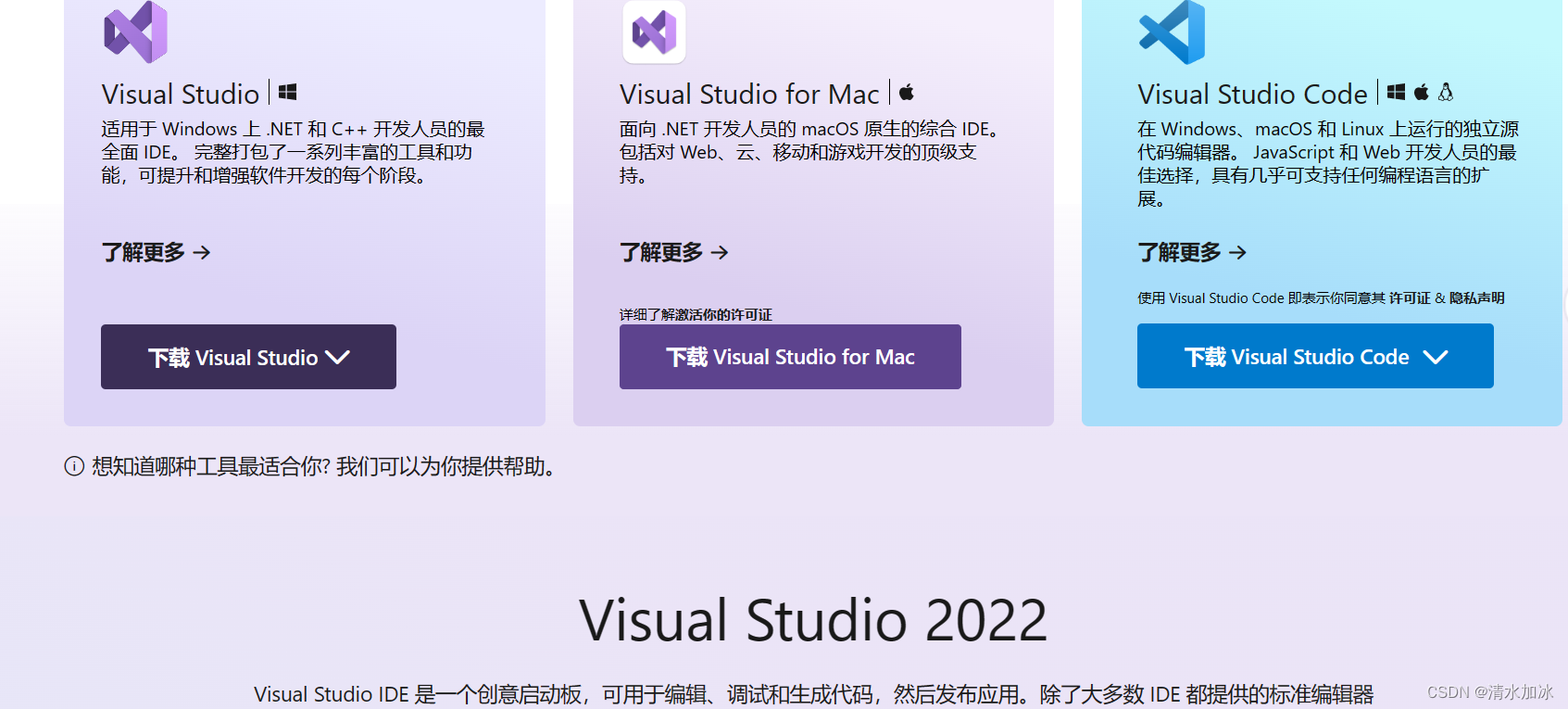 VS是微软旗下的开发工具包系列产品,可供用户免费使用,网上搜索付费安装基本都是假的,VS下载官网:Visual Studio: 面向软件开发人员和 Teams 的 IDE 和代码编辑器