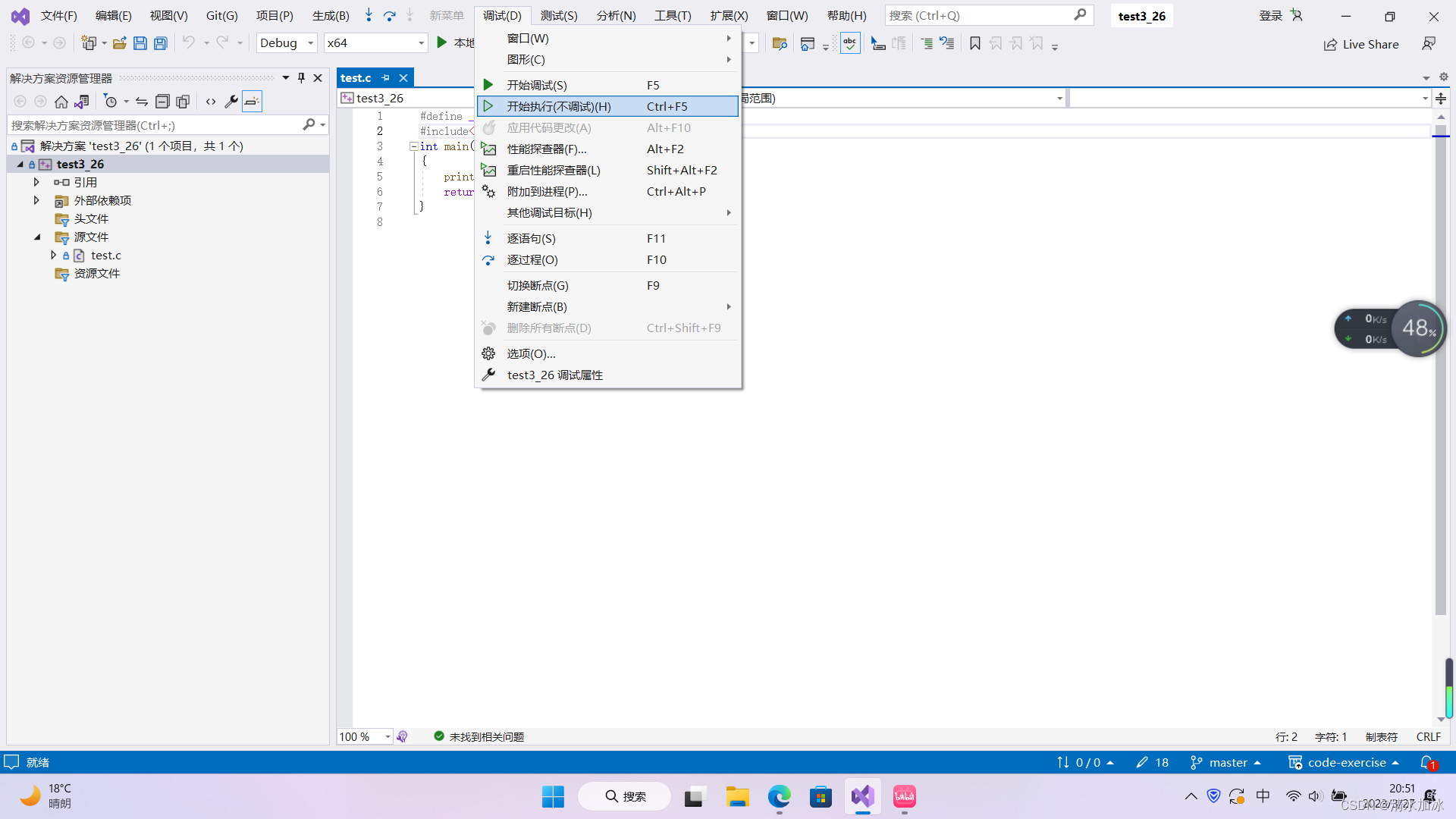 编写代码之后怎么让它运行点击屏幕上方调试,选择开始执行不调试(也可以快捷键Ctrl+F5)