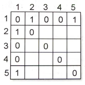 1.下图是一个无向图,有五个顶点,所以我们使用5x5的数组存放图形。