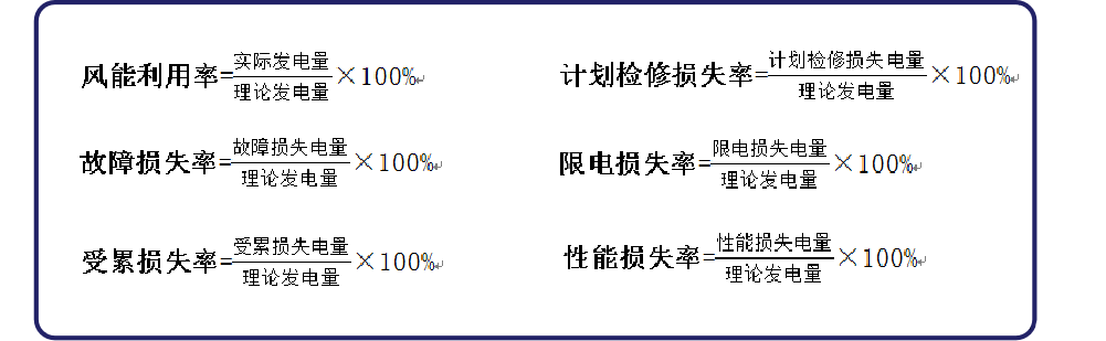 (1)公式:理论发电量=机组scada发电量+非计划损失电量+计划损失电量+限电损失电量+性能损失电量+受累损失电量