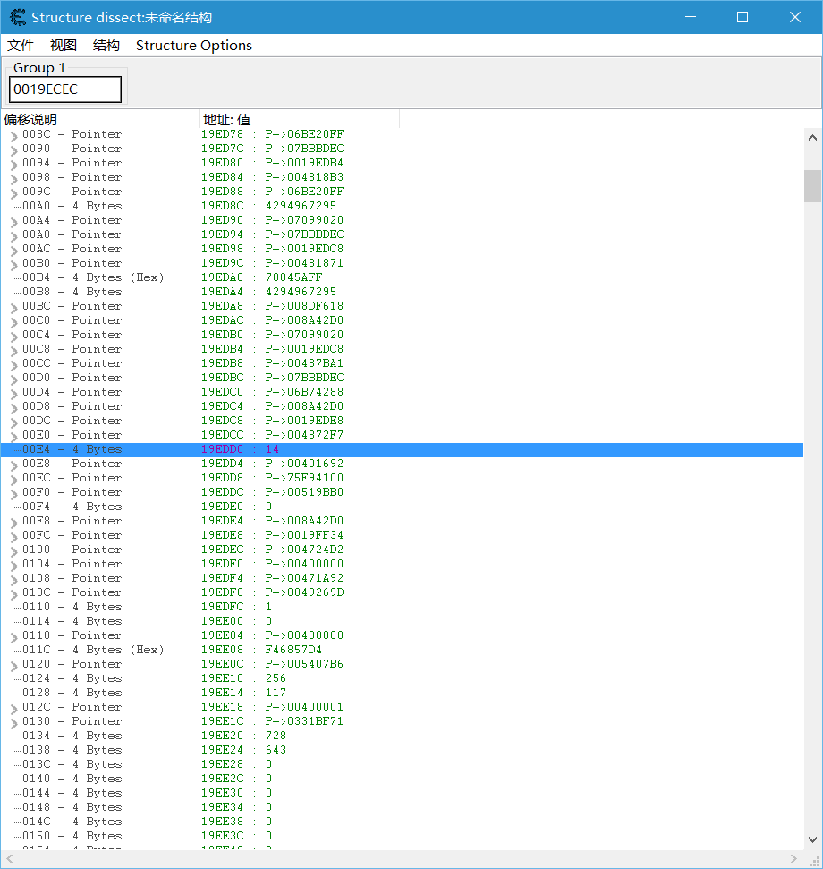 偏移量为0到40都是CE的D3DHOOK模块的栈,从44开始是游戏程序的部分,偏移量为44的是游戏调用DrawPrimitiveUP返回的地址(因为是004开头的,很容易猜出)