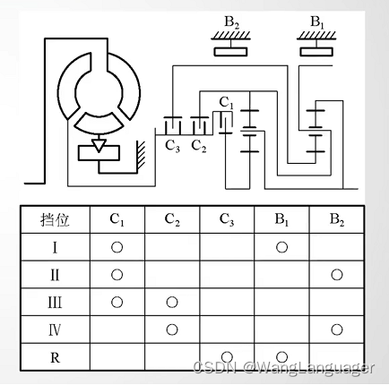 行星传动易于实现自动化、结构紧凑、质量轻,且可以实现液力变矩器的功率分流,是目前普遍采用的形式。AT的换挡过程也是一个离合器分离而另外一个离合器接合的过程。