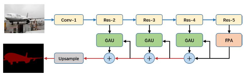 基于FPA和GAU,论文提出了完整的PAN架构,如下图:
