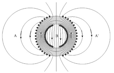 以共模电感为例,其周围的电磁场泄露见下图,可见要避免在其上下两绕组开口处放置敏感器件,此两处漏磁场密度最高,强度最大。