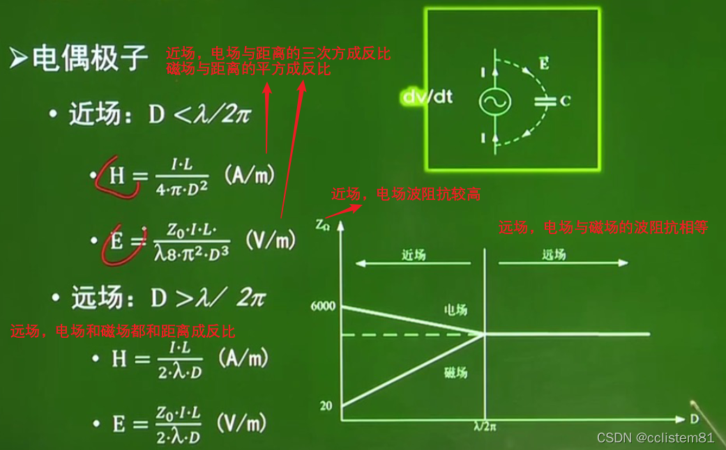 则,对于上面所说的偶极子天线,其E大于H,则Z0较大,所以电场源又称高阻抗场源;