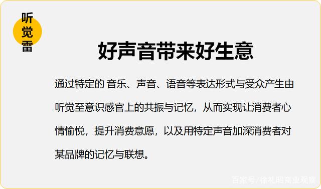 声音品牌化:美国密西根大学教授Aradhna Krishna将“声音品牌化”定义为:在某种特定的声音与某个品牌之间建立联结。