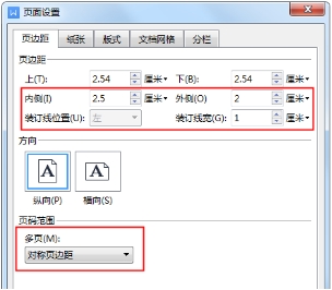 当双面打印出来的纸质文件需要装订时,就要在打印之前对页边距进行设置,使奇数页页面左侧和偶数页页面右侧留有较大页边距,且距离相等。