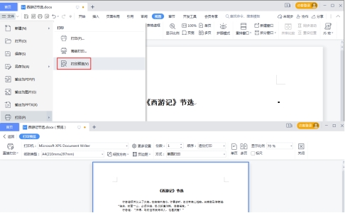 打印文字文档之前,可先对文字文档进行预览,查看设置的打印方式和打印效果是否符合预期。