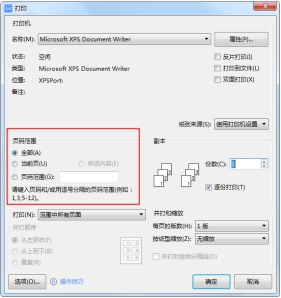 用户在打印时可对文档进行选择性打印,根据需要打印全部内容或者只打印需要的页数,如图2-204所示。需注意,只打印几页时,需要用户自己输入打印的页码,文本框中的标点符号要在英文状态下输入。