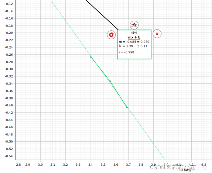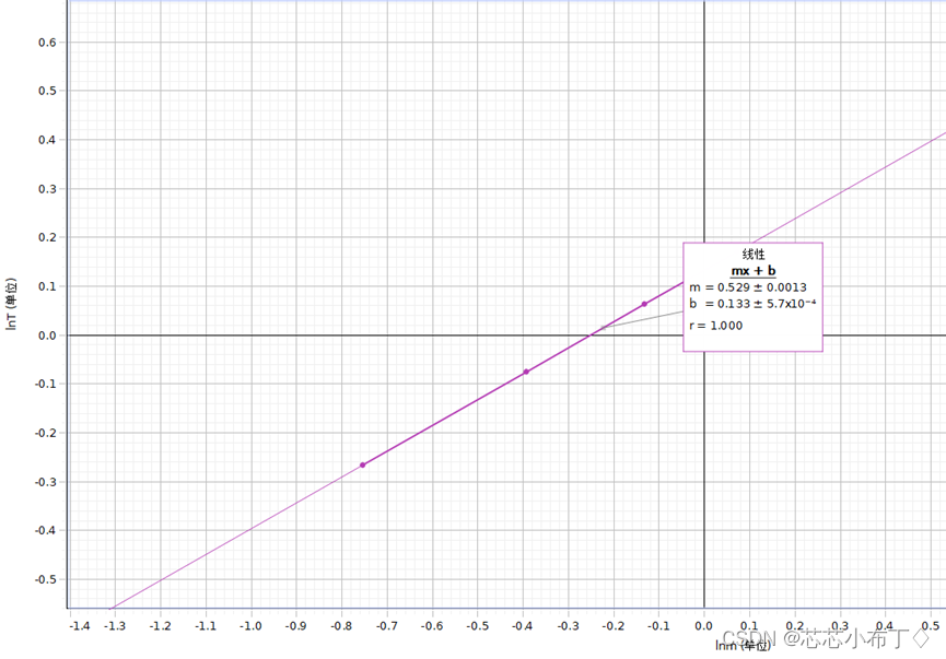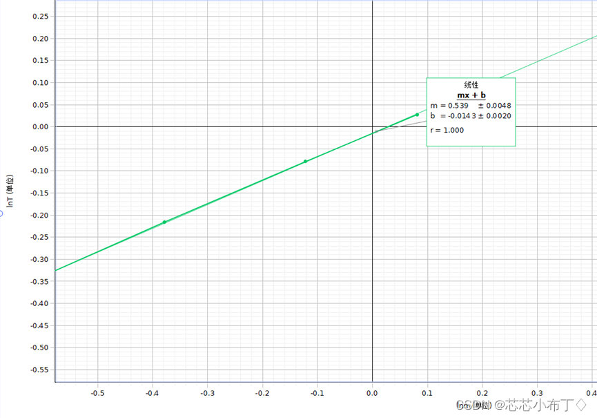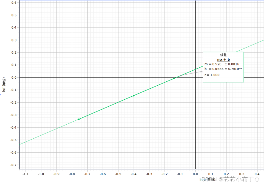 图5:黄色弹簧(k=40N/m)振动周期的对数lnT随振子质量的对数lnM的变化关系