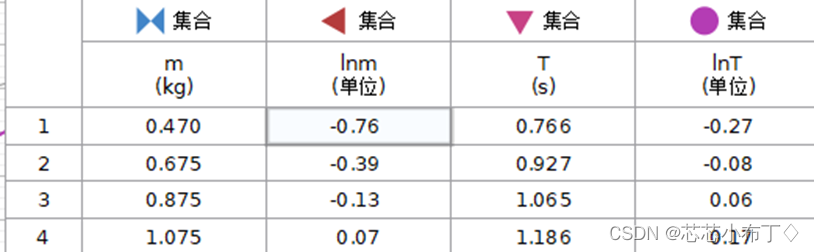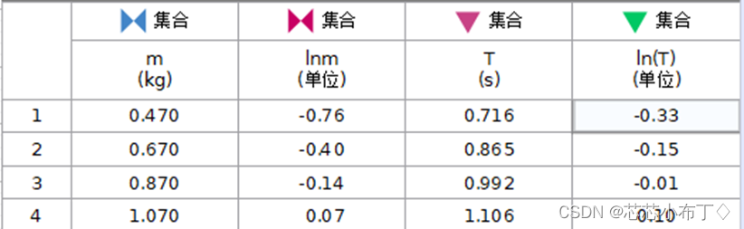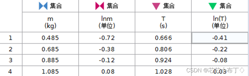 可以看出,在误差允许的情况下,当弹簧的弹性系数k不变时,lnT和lnM呈线性关系。