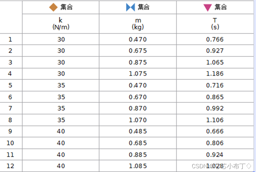 表1:振子质量,弹簧弹性系数和振子周期T的实验数据
