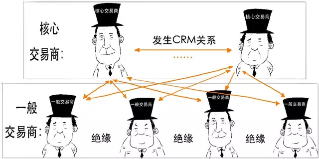 核心交易商可以与所有参与者进行CRM交易,一般交易商只能与核心交易商进行CRM交易。