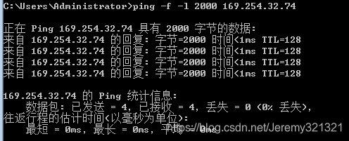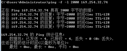 3)自选数据长度的ping探测报文: ping 目的主机/IP地址 -l size