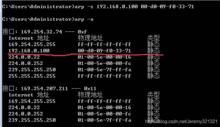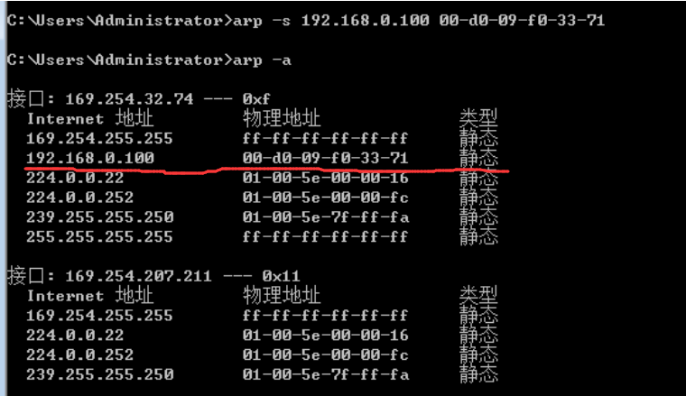 添加ip为192.168.0.100,与其对应的MAC为00-d0-09-f0-33-71的表项